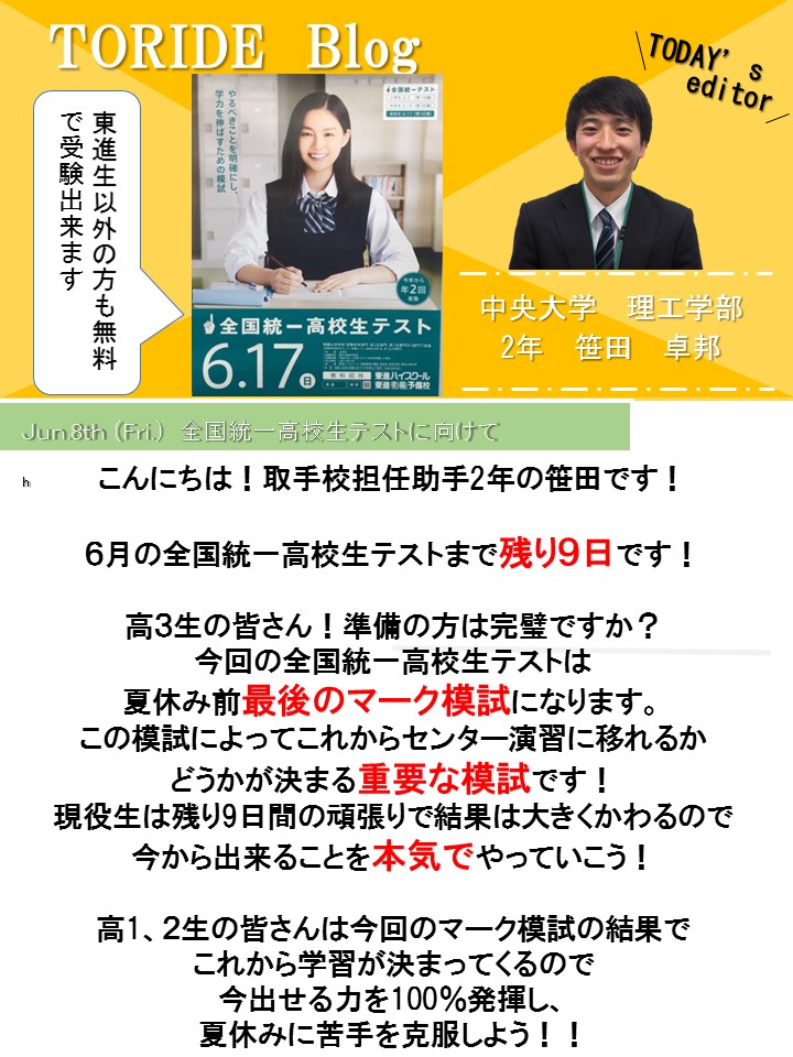 残り9日頑張っていこう!! | 東進ハイスクール 取手校 大学受験の予備校・塾|茨城県