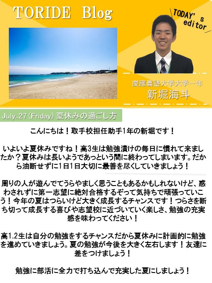 東進ハイスクール 取手校 » ブログ » 7/27 夏休みの過ごし方