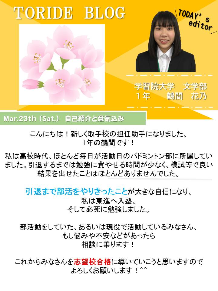 新規担任助手 よろしくお願いします。 | 東進ハイスクール 取手校 大学受験の予備校・塾|茨城県