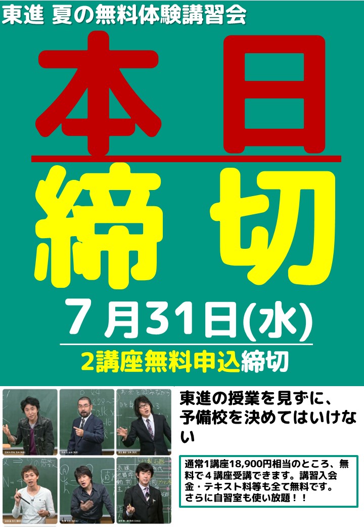 2019年 7月 30日 【東進取手校 夏の無料体験講習!】明日が申し込み締切日です
